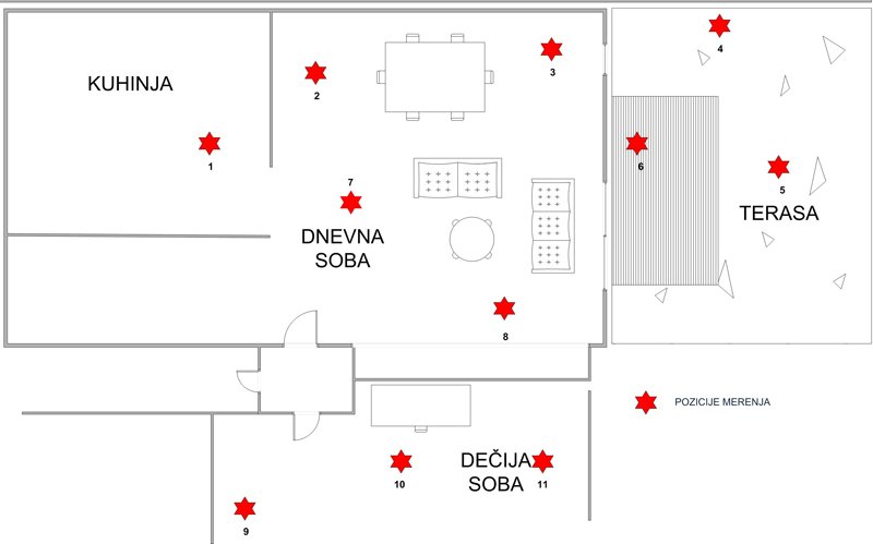 Primer: Plan glavnih merenja EMZ sa pozicijama merenja u stanu korisnika