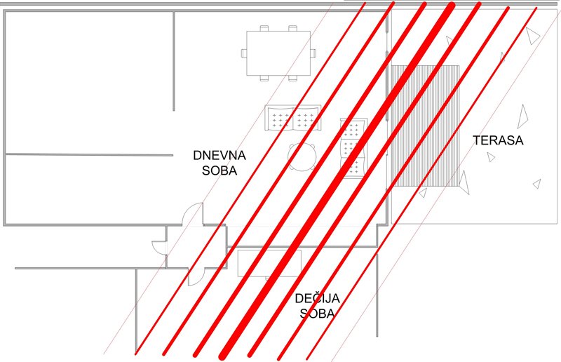 Primer: Grafički prikaz detektovanog EM polja u stanu korisnika