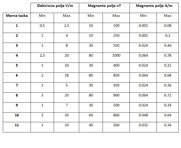 Kreiranje mape tabelarnog i šematskog prikaza rezultata merenja sa prikazanim/navedenim pozicijama/prostorijama gde su merenja izvršena.